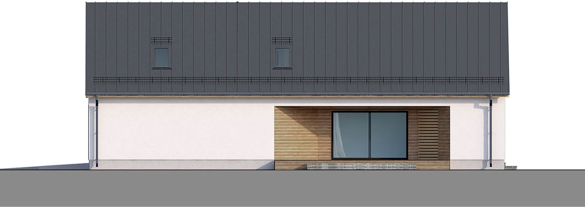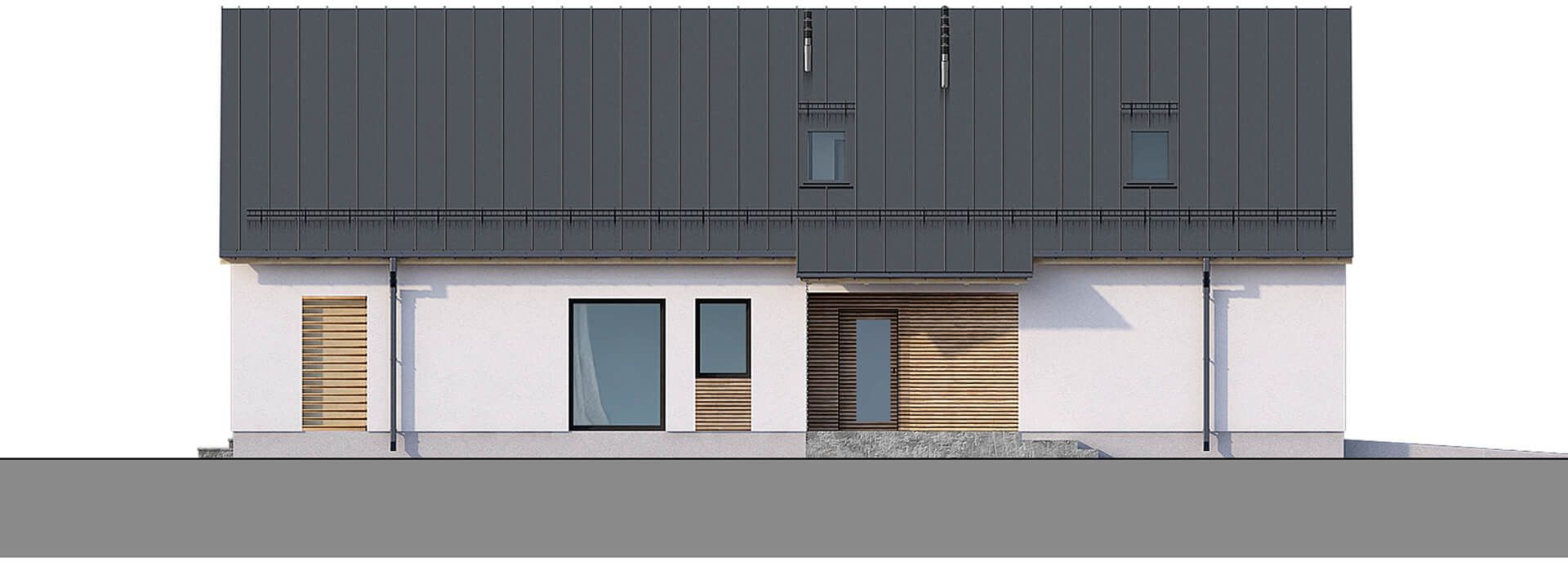 Graficzne opracowanie rzutów poglądowych widocznych na karcie projektu zostało wykonane przez Extradom.pl. Prezentowane przez Extradom.pl wizualizacje wykonane zostały przez autora projektu i należy poczytywać je jedynie za przykład i propozycję wykończenia, wizję architektoniczną autora projektu. Ostateczne wykończenie budynku może nastąpić na wiele sposobów. Szczegółowe rozwiązania zastosowane w oferowanej dokumentacji - w tym również ilość, lokalizacje i wygląd okien, drzwi, kominów - mogą w niewielkim stopniu różnić się od prezentowanej wizualizacji budynku.