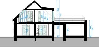 Fundamenty: ławy żelbetowe. Ściany konstrukcja: pustak ceramiczny Porotherm. Ściany elewacja: tynk + drewno. Stropy: żelbetowe monolityczne. Dach konstrukcja: więźba drewniana płatwiowo-kleszczowa. Dach pokrycie: blacha stalowa cynkowana powlekana na rąbek stojący. Schody: żelbetowe. Ogrzewanie kocioł: kocioł gazowy dwufunkcyjny + wentylacja mechaniczna z rekuperacją. Ogrzewanie grzejniki: grzejniki ścienne + ogrzewanie podłogowe.