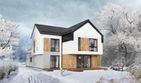 Graficzne opracowanie rzutów poglądowych widocznych na karcie projektu zostało wykonane przez Extradom.pl. Prezentowane przez Extradom.pl wizualizacje wykonane zostały przez autora projektu i należy poczytywać je jedynie za przykład i propozycję wykończenia, wizję architektoniczną autora projektu. Ostateczne wykończenie budynku może nastąpić na wiele sposobów. Szczegółowe rozwiązania zastosowane w oferowanej dokumentacji - w tym również ilość, lokalizacje i wygląd okien, drzwi, kominów - mogą w niewielkim stopniu różnić się od prezentowanej wizualizacji budynku.