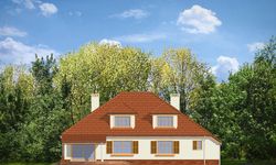 Graficzne opracowanie rzutów poglądowych widocznych na karcie projektu zostało wykonane przez Extradom.pl. Prezentowane przez Extradom.pl wizualizacje wykonane zostały przez autora projektu i należy poczytywać je jedynie za przykład i propozycję wykończenia, wizję architektoniczną autora projektu. Ostateczne wykończenie budynku może nastąpić na wiele sposobów. Szczegółowe rozwiązania zastosowane w oferowanej dokumentacji - w tym również ilość, lokalizacje i wygląd okien, drzwi, kominów - mogą w niewielkim stopniu różnić się od prezentowanej wizualizacji budynku.