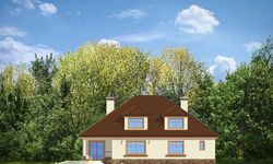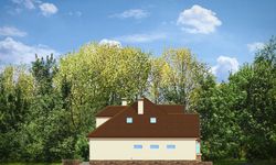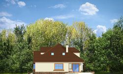 Graficzne opracowanie rzutów poglądowych widocznych na karcie projektu zostało wykonane przez Extradom.pl. Prezentowane przez Extradom.pl wizualizacje wykonane zostały przez autora projektu i należy poczytywać je jedynie za przykład i propozycję wykończenia, wizję architektoniczną autora projektu. Ostateczne wykończenie budynku może nastąpić na wiele sposobów. Szczegółowe rozwiązania zastosowane w oferowanej dokumentacji - w tym również ilość, lokalizacje i wygląd okien, drzwi, kominów - mogą w niewielkim stopniu różnić się od prezentowanej wizualizacji budynku.