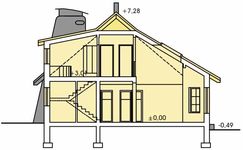Graficzne opracowanie rzutów poglądowych widocznych na karcie projektu zostało wykonane przez Extradom.pl. Prezentowane przez Extradom.pl wizualizacje wykonane zostały przez autora projektu i należy poczytywać je jedynie za przykład i propozycję wykończenia, wizję architektoniczną autora projektu. Ostateczne wykończenie budynku może nastąpić na wiele sposobów. Szczegółowe rozwiązania zastosowane w oferowanej dokumentacji - w tym również ilość, lokalizacje i wygląd okien, drzwi, kominów - mogą w niewielkim stopniu różnić się od prezentowanej wizualizacji budynku.