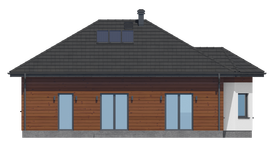Graficzne opracowanie rzutów poglądowych widocznych na karcie projektu zostało wykonane przez Extradom.pl. Prezentowane przez Extradom.pl wizualizacje wykonane zostały przez autora projektu i należy poczytywać je jedynie za przykład i propozycję wykończenia, wizję architektoniczną autora projektu. Ostateczne wykończenie budynku może nastąpić na wiele sposobów. Szczegółowe rozwiązania zastosowane w oferowanej dokumentacji - w tym również ilość, lokalizacje i wygląd okien, drzwi, kominów - mogą w niewielkim stopniu różnić się od prezentowanej wizualizacji budynku.