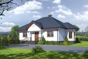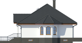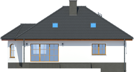 Graficzne opracowanie rzutów poglądowych widocznych na karcie projektu zostało wykonane przez Extradom.pl. Prezentowane przez Extradom.pl wizualizacje wykonane zostały przez autora projektu i należy poczytywać je jedynie za przykład i propozycję wykończenia, wizję architektoniczną autora projektu. Ostateczne wykończenie budynku może nastąpić na wiele sposobów. Szczegółowe rozwiązania zastosowane w oferowanej dokumentacji - w tym również ilość, lokalizacje i wygląd okien, drzwi, kominów - mogą w niewielkim stopniu różnić się od prezentowanej wizualizacji budynku.