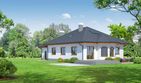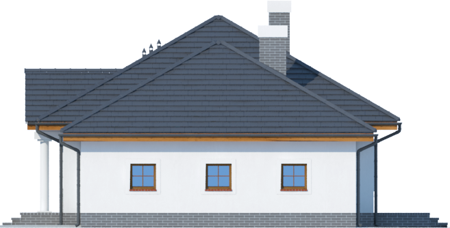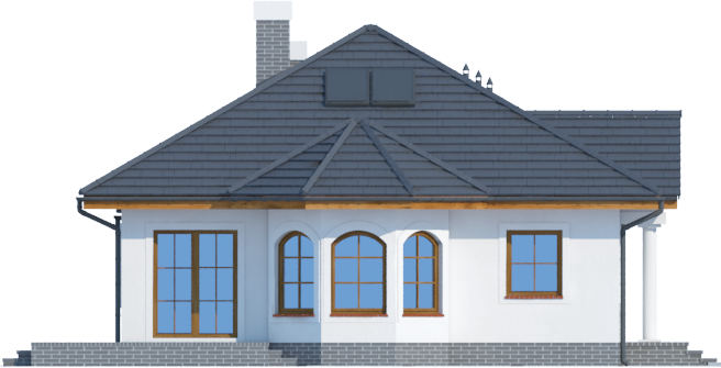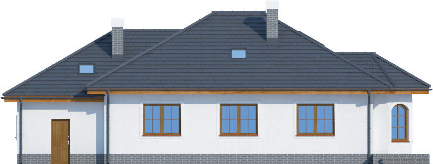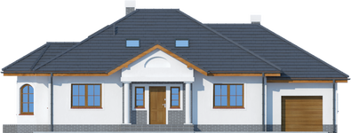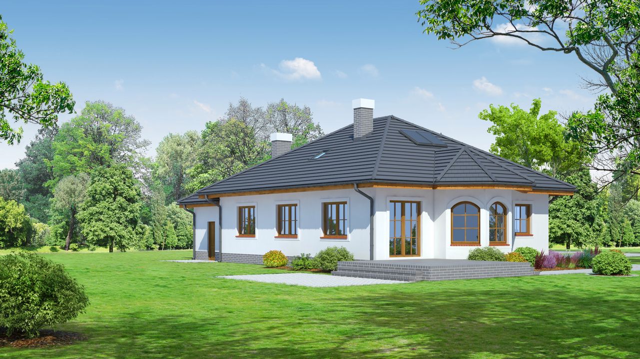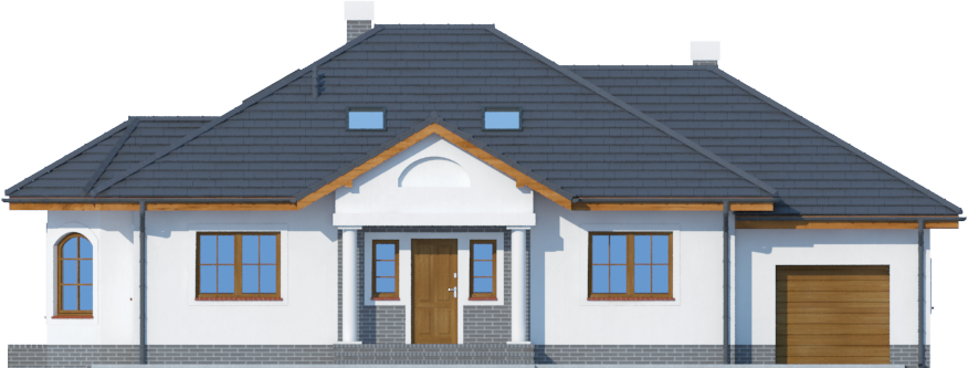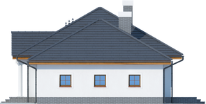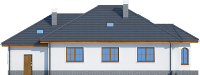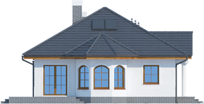 Graficzne opracowanie rzutów poglądowych widocznych na karcie projektu zostało wykonane przez Extradom.pl. Prezentowane przez Extradom.pl wizualizacje wykonane zostały przez autora projektu i należy poczytywać je jedynie za przykład i propozycję wykończenia, wizję architektoniczną autora projektu. Ostateczne wykończenie budynku może nastąpić na wiele sposobów. Szczegółowe rozwiązania zastosowane w oferowanej dokumentacji - w tym również ilość, lokalizacje i wygląd okien, drzwi, kominów - mogą w niewielkim stopniu różnić się od prezentowanej wizualizacji budynku.