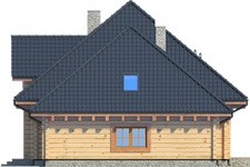 Wysokość ścianki kolankowej: 0.88 m. Strop: drewniany. Pokrycie dachu: dachówka gontopodobna Gerard Corona. Ściany zewnętrzne: płazy drewniane + wełna mineralna + deska. Ściany wewnętrzne: płazy drewniane. Typ ogrzewania: kocioł gazowy lub kocioł na paliwo stałe. Inne: okna połaciowe Velux.