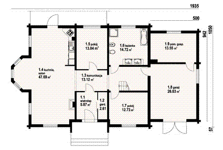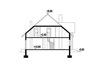 Graficzne opracowanie rzutów poglądowych widocznych na karcie projektu zostało wykonane przez Extradom.pl. Prezentowane przez Extradom.pl wizualizacje wykonane zostały przez autora projektu i należy poczytywać je jedynie za przykład i propozycję wykończenia, wizję architektoniczną autora projektu. Ostateczne wykończenie budynku może nastąpić na wiele sposobów. Szczegółowe rozwiązania zastosowane w oferowanej dokumentacji - w tym również ilość, lokalizacje i wygląd okien, drzwi, kominów - mogą w niewielkim stopniu różnić się od prezentowanej wizualizacji budynku.