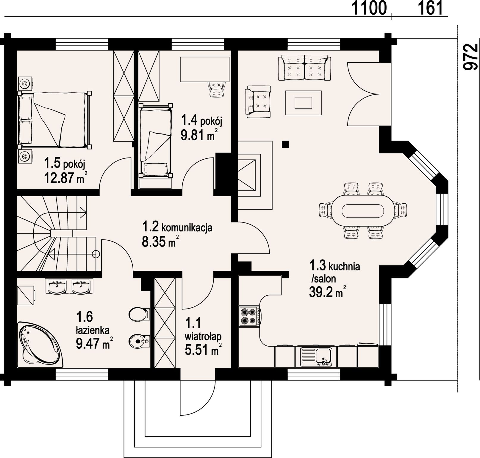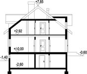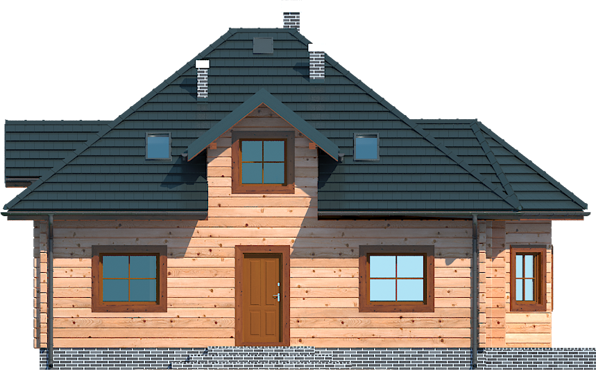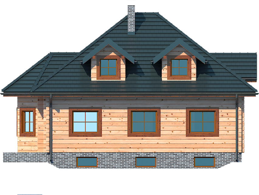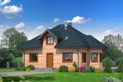 Graficzne opracowanie rzutów poglądowych widocznych na karcie projektu zostało wykonane przez Extradom.pl. Prezentowane przez Extradom.pl wizualizacje wykonane zostały przez autora projektu i należy poczytywać je jedynie za przykład i propozycję wykończenia, wizję architektoniczną autora projektu. Ostateczne wykończenie budynku może nastąpić na wiele sposobów. Szczegółowe rozwiązania zastosowane w oferowanej dokumentacji - w tym również ilość, lokalizacje i wygląd okien, drzwi, kominów - mogą w niewielkim stopniu różnić się od prezentowanej wizualizacji budynku.