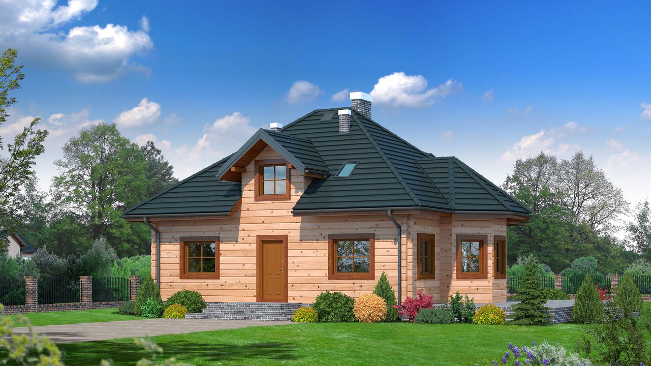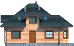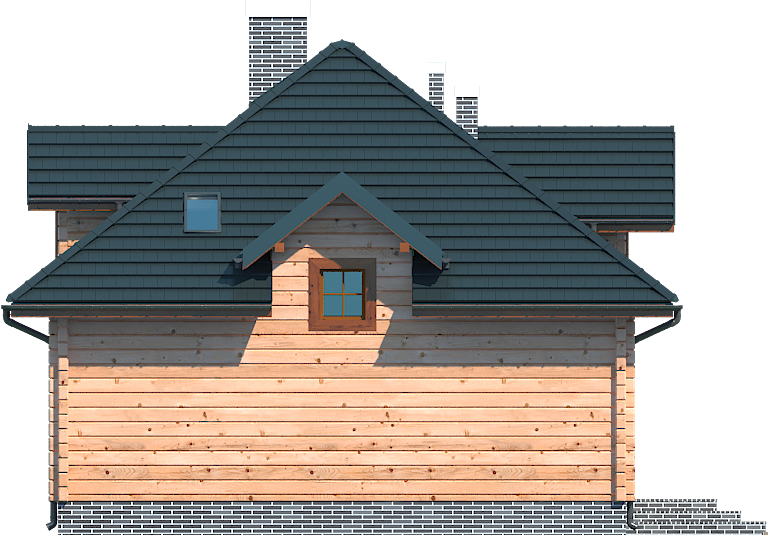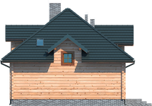 Wys. ścianki kolankowej 0.76 m Ilość drewna na więźbę 11.67 m³. Strop: drewniany. Pokrycie dachu: dachówka gontopodobna z posypką Gerard Corona. Ściany wewnętrzne: płazy drewniane. Ściany zewnętrzne: płazy drewniane + wełna mineralna + deska. Typ ogrzewania: kocioł gazowy lub kocioł na paliwo stałe.