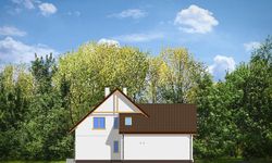 Graficzne opracowanie rzutów poglądowych widocznych na karcie projektu zostało wykonane przez Extradom.pl. Prezentowane przez Extradom.pl wizualizacje wykonane zostały przez autora projektu i należy poczytywać je jedynie za przykład i propozycję wykończenia, wizję architektoniczną autora projektu. Ostateczne wykończenie budynku może nastąpić na wiele sposobów. Szczegółowe rozwiązania zastosowane w oferowanej dokumentacji - w tym również ilość, lokalizacje i wygląd okien, drzwi, kominów - mogą w niewielkim stopniu różnić się od prezentowanej wizualizacji budynku.