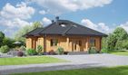 Graficzne opracowanie rzutów poglądowych widocznych na karcie projektu zostało wykonane przez Extradom.pl. Prezentowane przez Extradom.pl wizualizacje wykonane zostały przez autora projektu i należy poczytywać je jedynie za przykład i propozycję wykończenia, wizję architektoniczną autora projektu. Ostateczne wykończenie budynku może nastąpić na wiele sposobów. Szczegółowe rozwiązania zastosowane w oferowanej dokumentacji - w tym również ilość, lokalizacje i wygląd okien, drzwi, kominów - mogą w niewielkim stopniu różnić się od prezentowanej wizualizacji budynku.