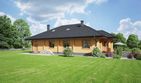Strop: drewniany. Pokrycie dachu: dachówka gontopodobna Gerard Corona. Ściany zewnętrzne: płazy drewniane + wełna mineralna + deska. Ściany wewnętrzne: płazy drewniane. Typ ogrzewania: kocioł na paliwo stałe. Instalacje dodatkowe: instalacja solarna. Inne: okna połaciowe Fakro, brama garażowa Hörmann.