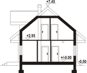 Graficzne opracowanie rzutów poglądowych widocznych na karcie projektu zostało wykonane przez Extradom.pl. Prezentowane przez Extradom.pl wizualizacje wykonane zostały przez autora projektu i należy poczytywać je jedynie za przykład i propozycję wykończenia, wizję architektoniczną autora projektu. Ostateczne wykończenie budynku może nastąpić na wiele sposobów. Szczegółowe rozwiązania zastosowane w oferowanej dokumentacji - w tym również ilość, lokalizacje i wygląd okien, drzwi, kominów - mogą w niewielkim stopniu różnić się od prezentowanej wizualizacji budynku.