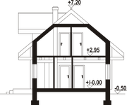 Graficzne opracowanie rzutów poglądowych widocznych na karcie projektu zostało wykonane przez Extradom.pl. Prezentowane przez Extradom.pl wizualizacje wykonane zostały przez autora projektu i należy poczytywać je jedynie za przykład i propozycję wykończenia, wizję architektoniczną autora projektu. Ostateczne wykończenie budynku może nastąpić na wiele sposobów. Szczegółowe rozwiązania zastosowane w oferowanej dokumentacji - w tym również ilość, lokalizacje i wygląd okien, drzwi, kominów - mogą w niewielkim stopniu różnić się od prezentowanej wizualizacji budynku.