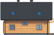 Wysokość ścianki kolankowej: 1.16 m. Strop: drewniany. Pokrycie dachu: dachówka gontopodobna Gerard Corona. Ściany zewnętrzne: płazy drewniane + wełna mineralna + deska. Ściany wewnętrzne: płazy drewniane. Typ ogrzewania: kocioł gazowy lub kocioł na paliwo stałe.