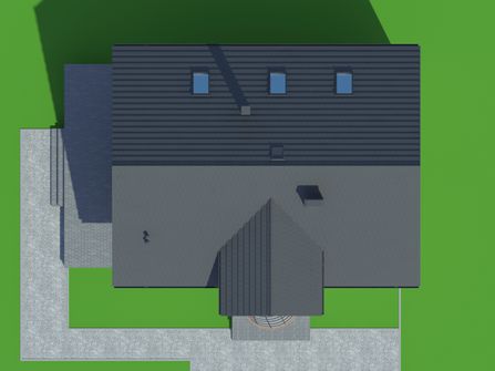 Graficzne opracowanie rzutów poglądowych widocznych na karcie projektu zostało wykonane przez Extradom.pl. Prezentowane przez Extradom.pl wizualizacje wykonane zostały przez autora projektu i należy poczytywać je jedynie za przykład i propozycję wykończenia, wizję architektoniczną autora projektu. Ostateczne wykończenie budynku może nastąpić na wiele sposobów. Szczegółowe rozwiązania zastosowane w oferowanej dokumentacji - w tym również ilość, lokalizacje i wygląd okien, drzwi, kominów - mogą w niewielkim stopniu różnić się od prezentowanej wizualizacji budynku.