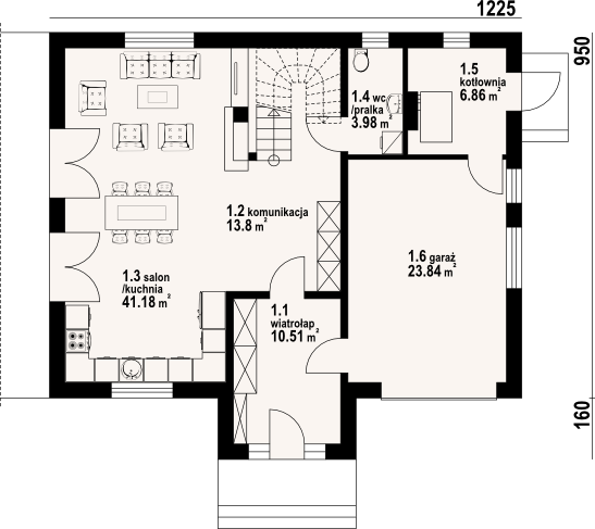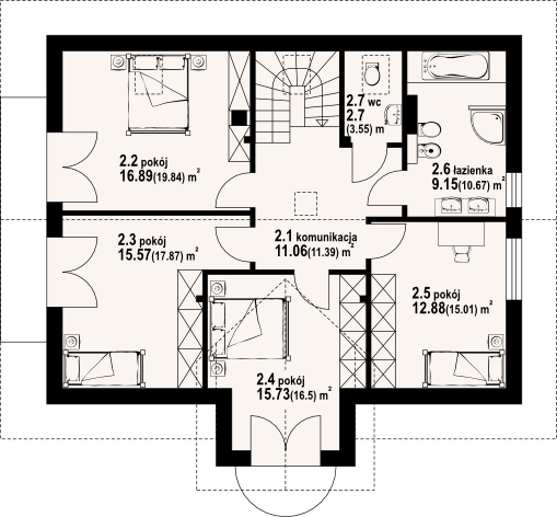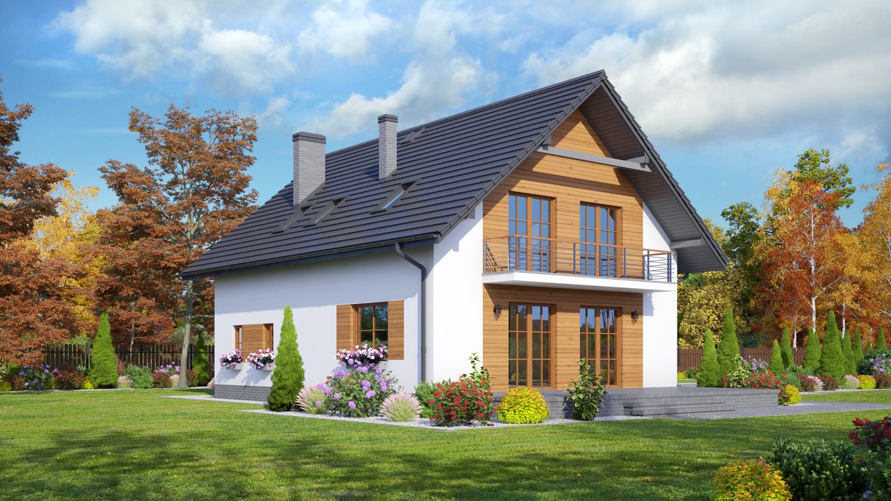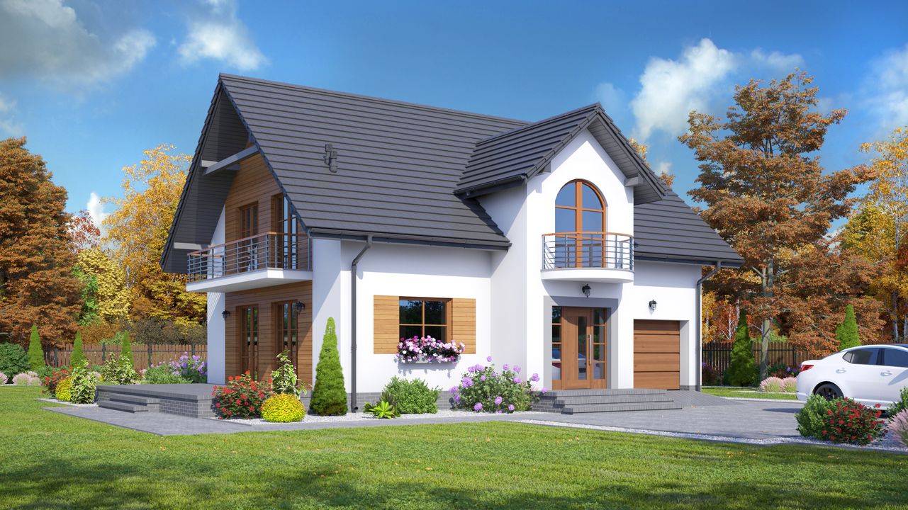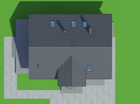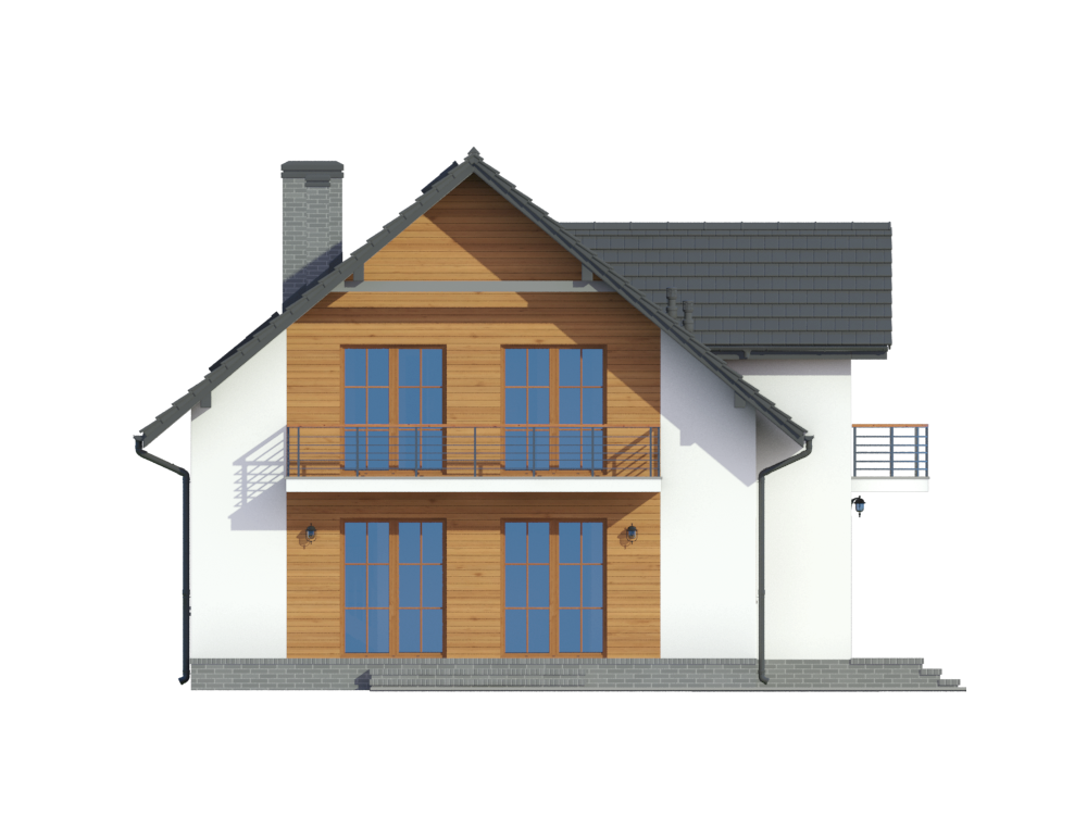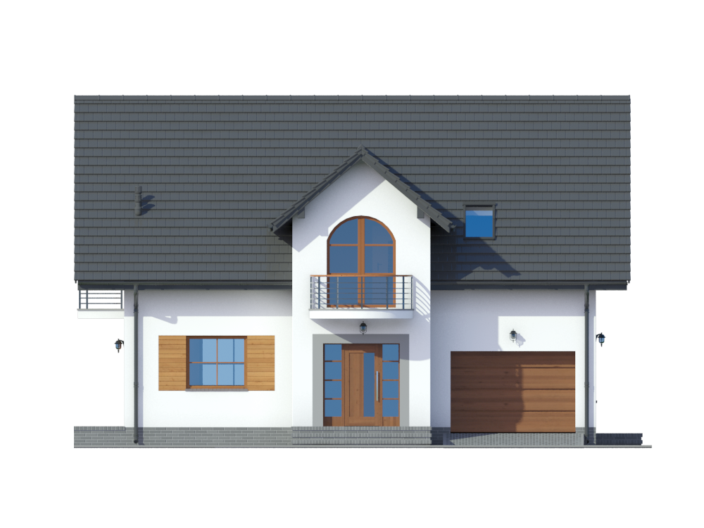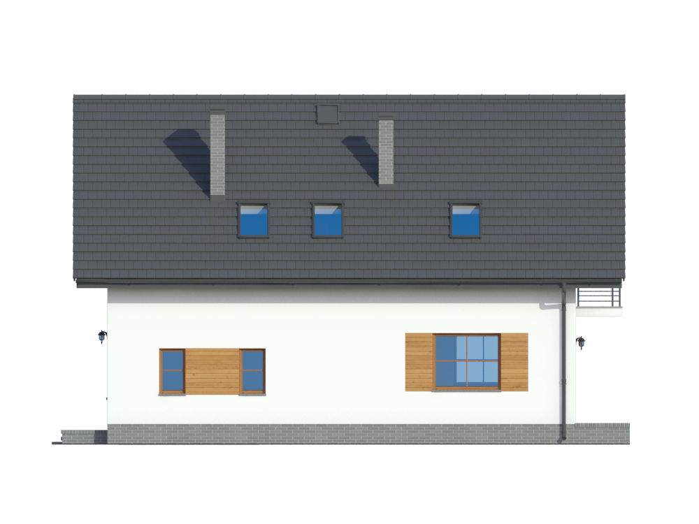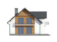 Graficzne opracowanie rzutów poglądowych widocznych na karcie projektu zostało wykonane przez Extradom.pl. Prezentowane przez Extradom.pl wizualizacje wykonane zostały przez autora projektu i należy poczytywać je jedynie za przykład i propozycję wykończenia, wizję architektoniczną autora projektu. Ostateczne wykończenie budynku może nastąpić na wiele sposobów. Szczegółowe rozwiązania zastosowane w oferowanej dokumentacji - w tym również ilość, lokalizacje i wygląd okien, drzwi, kominów - mogą w niewielkim stopniu różnić się od prezentowanej wizualizacji budynku.