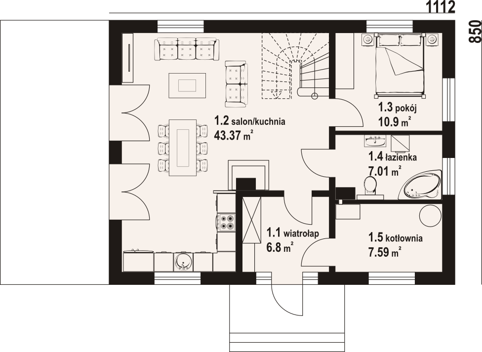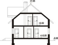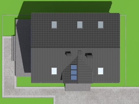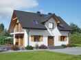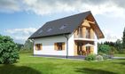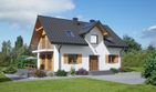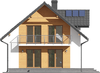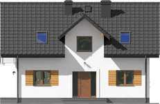 Graficzne opracowanie rzutów poglądowych widocznych na karcie projektu zostało wykonane przez Extradom.pl. Prezentowane przez Extradom.pl wizualizacje wykonane zostały przez autora projektu i należy poczytywać je jedynie za przykład i propozycję wykończenia, wizję architektoniczną autora projektu. Ostateczne wykończenie budynku może nastąpić na wiele sposobów. Szczegółowe rozwiązania zastosowane w oferowanej dokumentacji - w tym również ilość, lokalizacje i wygląd okien, drzwi, kominów - mogą w niewielkim stopniu różnić się od prezentowanej wizualizacji budynku.