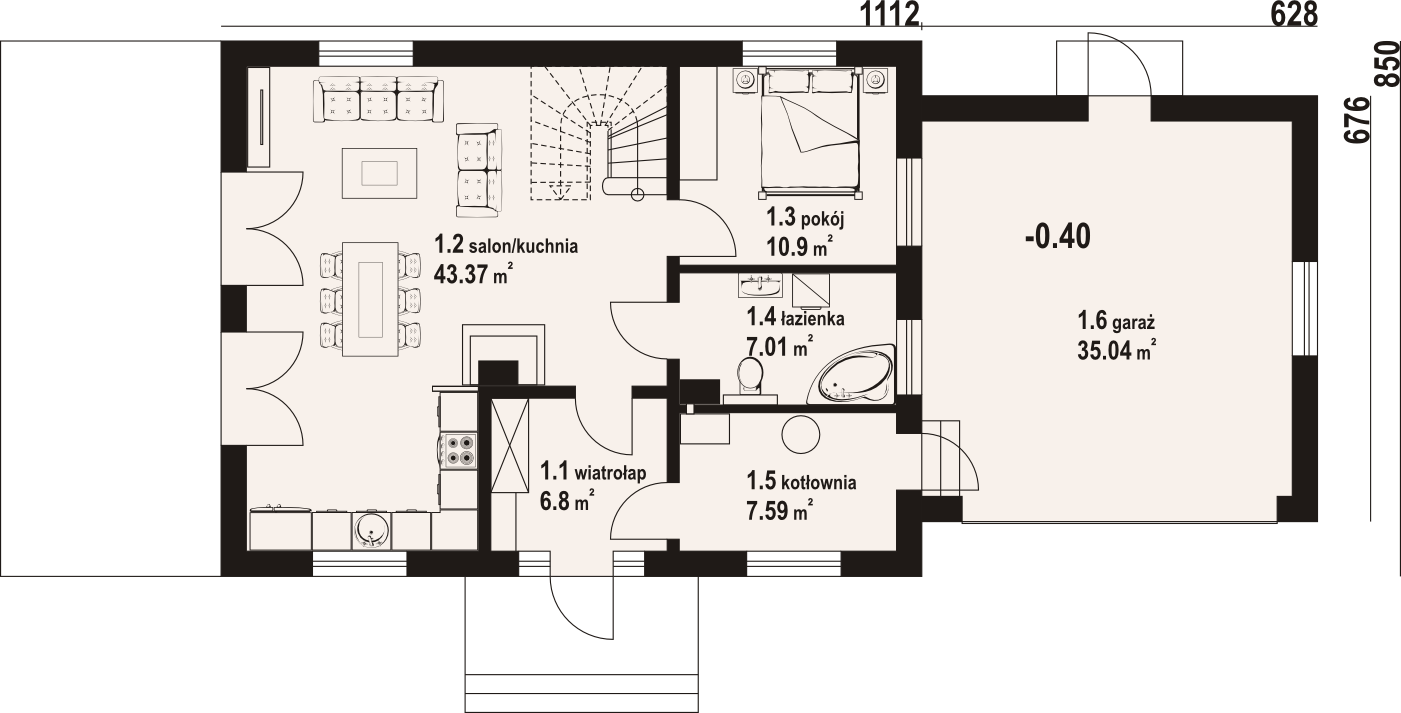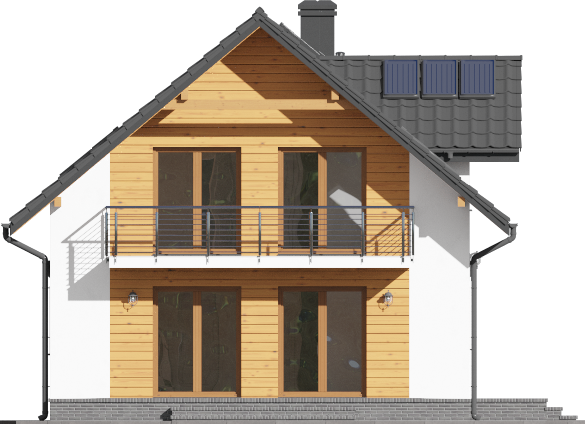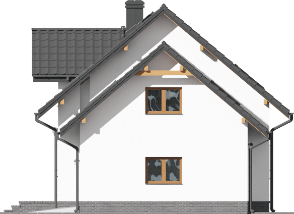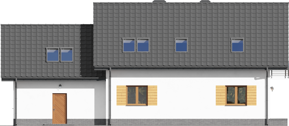 Graficzne opracowanie rzutów poglądowych widocznych na karcie projektu zostało wykonane przez Extradom.pl. Prezentowane przez Extradom.pl wizualizacje wykonane zostały przez autora projektu i należy poczytywać je jedynie za przykład i propozycję wykończenia, wizję architektoniczną autora projektu. Ostateczne wykończenie budynku może nastąpić na wiele sposobów. Szczegółowe rozwiązania zastosowane w oferowanej dokumentacji - w tym również ilość, lokalizacje i wygląd okien, drzwi, kominów - mogą w niewielkim stopniu różnić się od prezentowanej wizualizacji budynku.