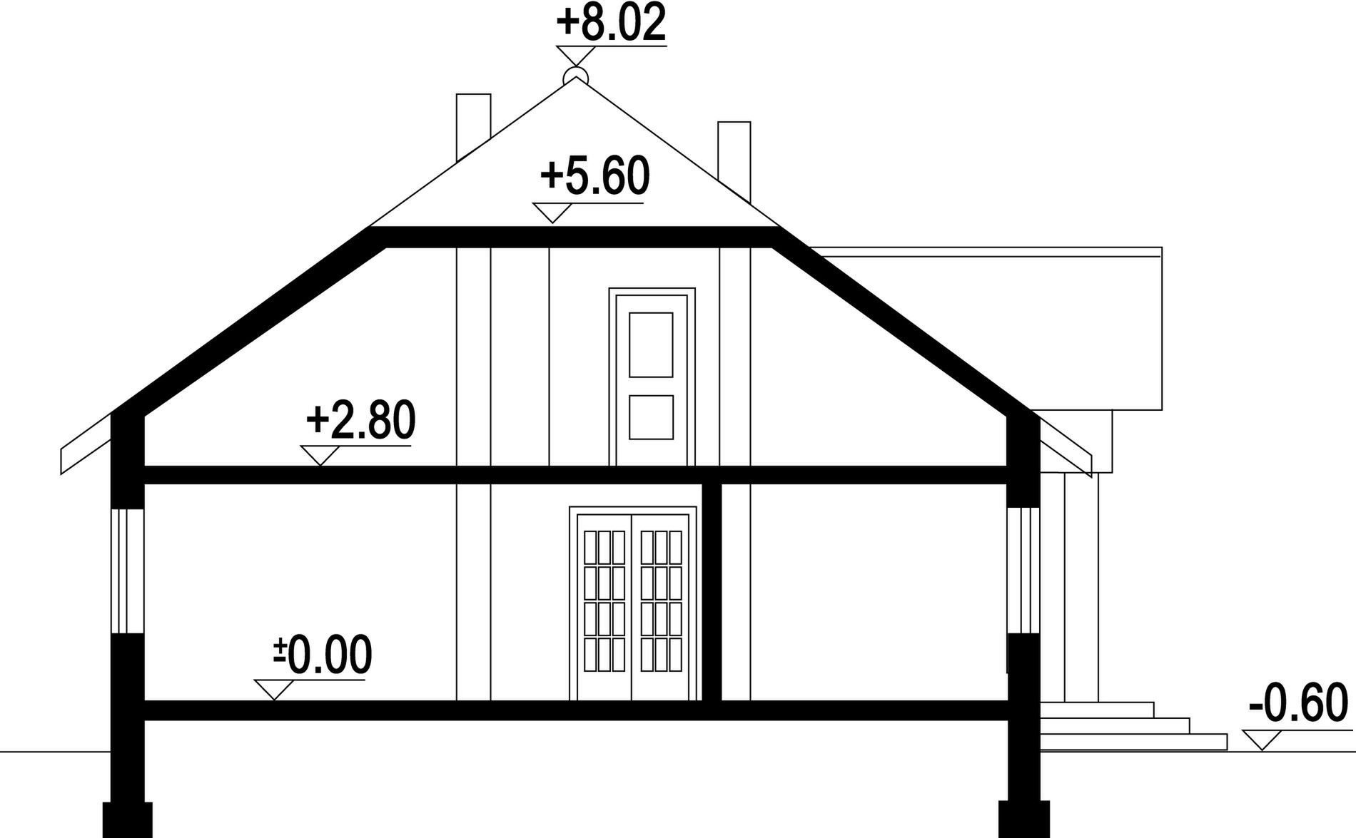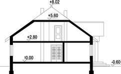 Wys. ścianki kolankowej 0.33 m Ilość drewna na więźbę 10.46 m³. Strop: płyta żelbetowa. Pokrycie dachu: dachówka ceramiczna. Ściany wewnętrzne: pustaki ceramiczne. Ściany zewnętrzne: pustaki ceramiczne + styropian. Typ ogrzewania: kocioł gazowy.
