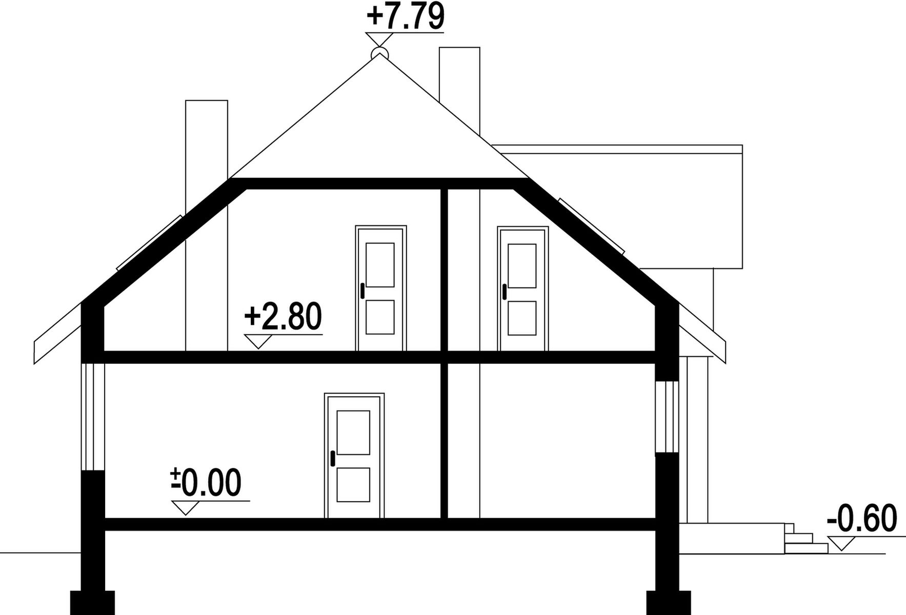 Wys. ścianki kolankowej 0.52 m Ilość drewna na więźbę 10.45 m³. Strop: drewniany. Pokrycie dachu: dachówka ceramiczna. Ściany wewnętrzne: pustaki ceramiczne. Ściany zewnętrzne: pustaki ceramiczne + styropian. Typ ogrzewania: kocioł gazowy.