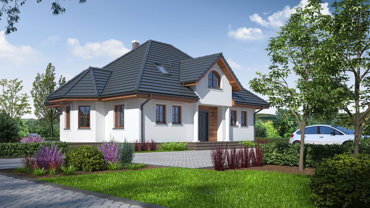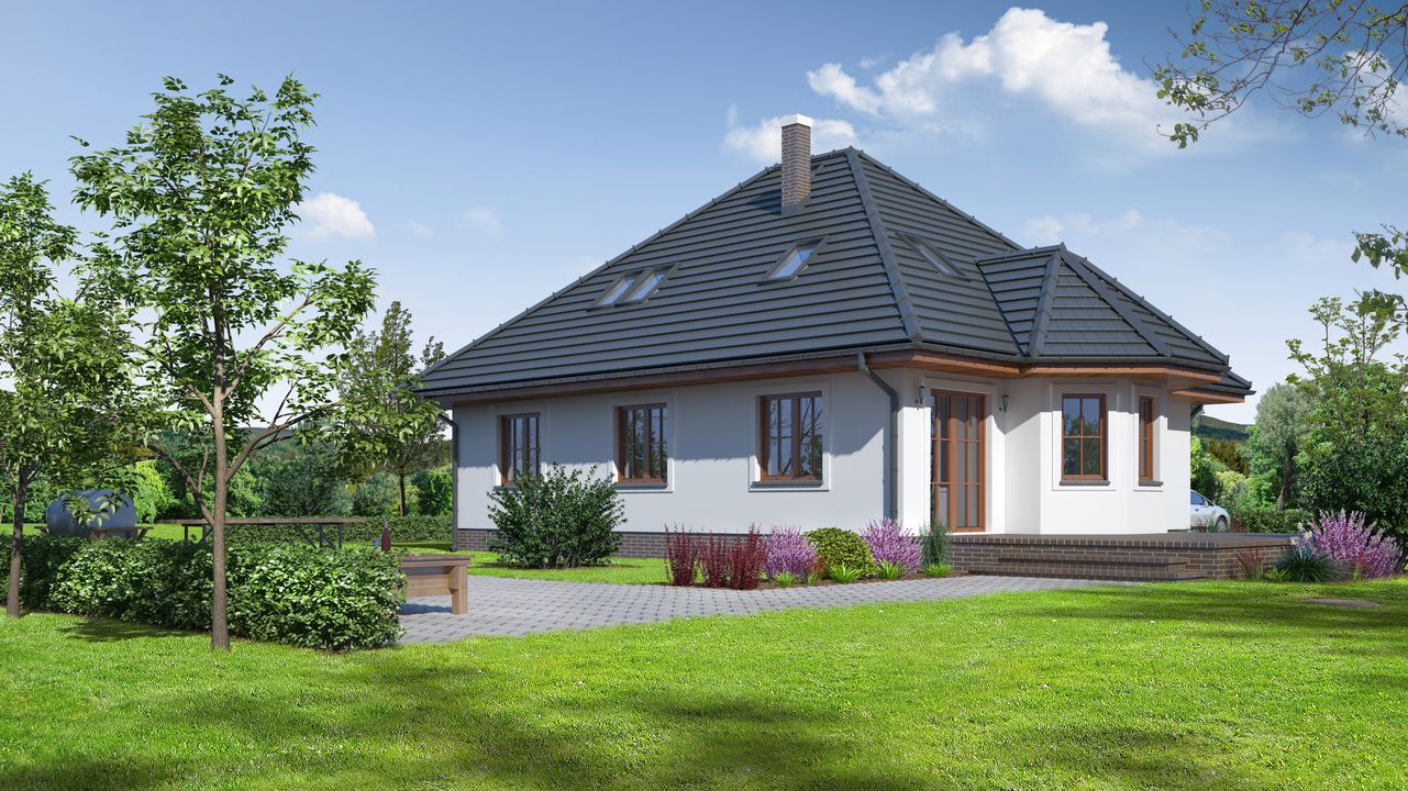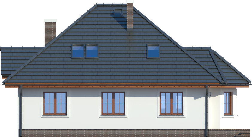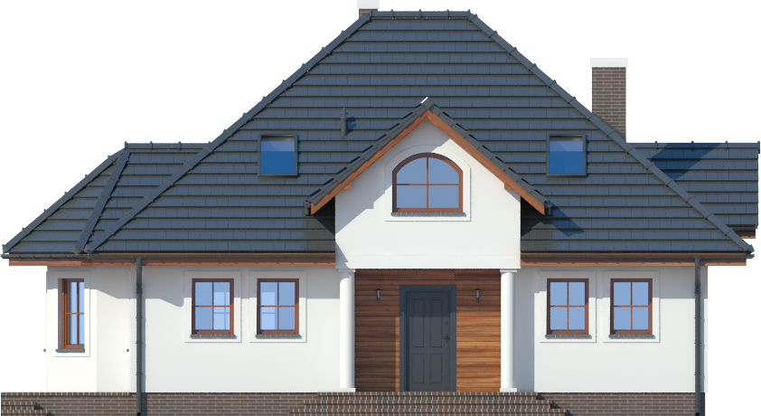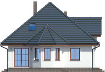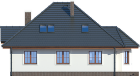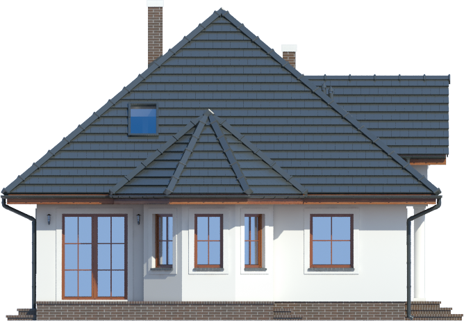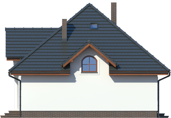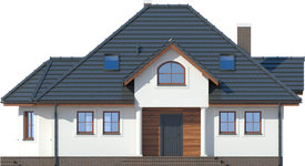 Graficzne opracowanie rzutów poglądowych widocznych na karcie projektu zostało wykonane przez Extradom.pl. Prezentowane przez Extradom.pl wizualizacje wykonane zostały przez autora projektu i należy poczytywać je jedynie za przykład i propozycję wykończenia, wizję architektoniczną autora projektu. Ostateczne wykończenie budynku może nastąpić na wiele sposobów. Szczegółowe rozwiązania zastosowane w oferowanej dokumentacji - w tym również ilość, lokalizacje i wygląd okien, drzwi, kominów - mogą w niewielkim stopniu różnić się od prezentowanej wizualizacji budynku.