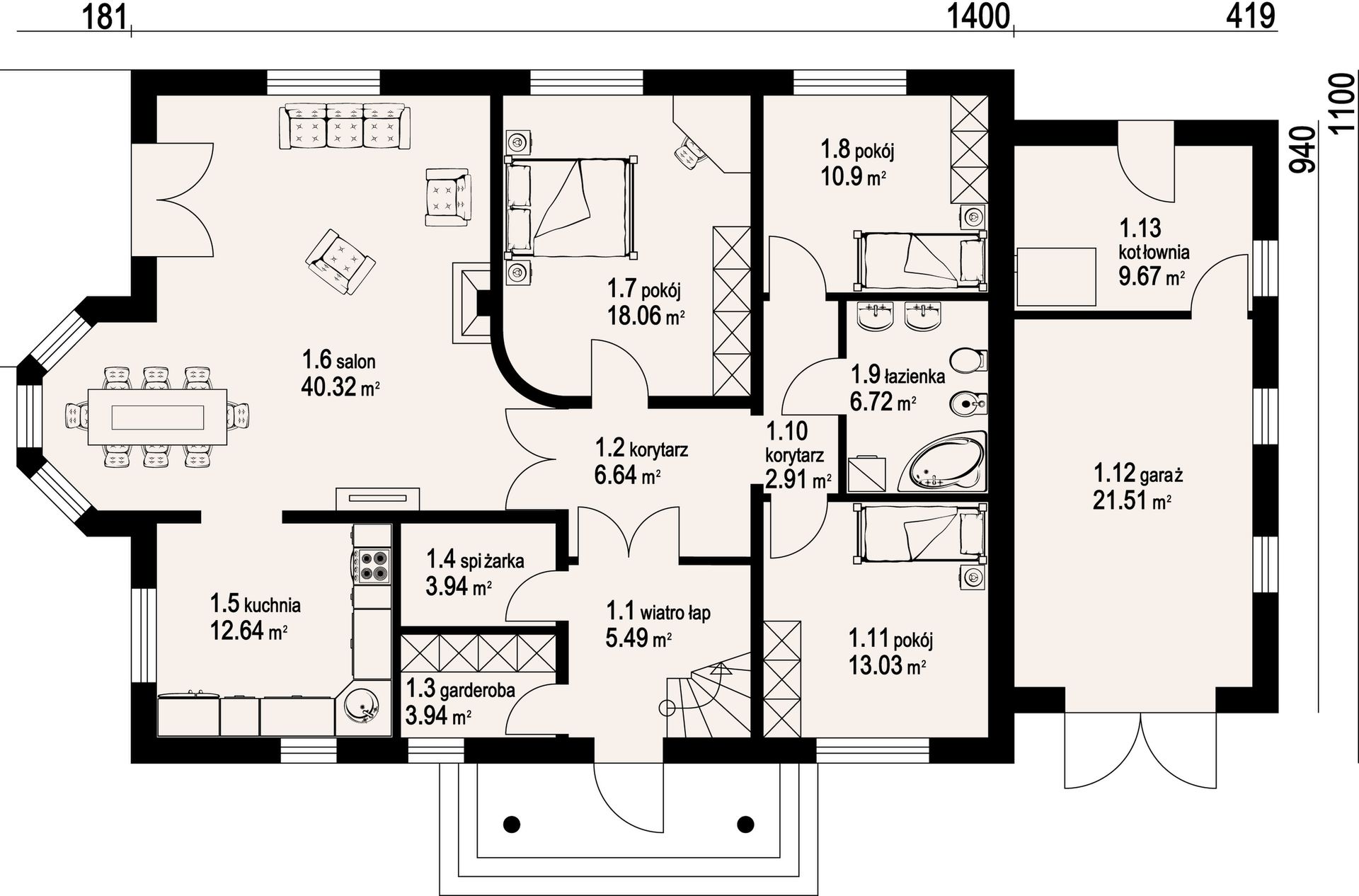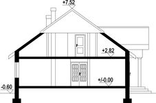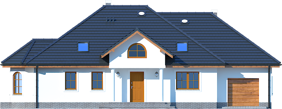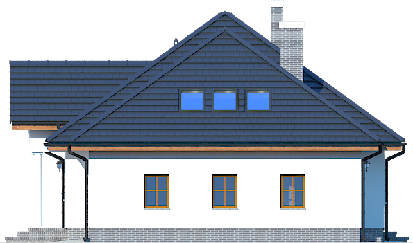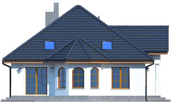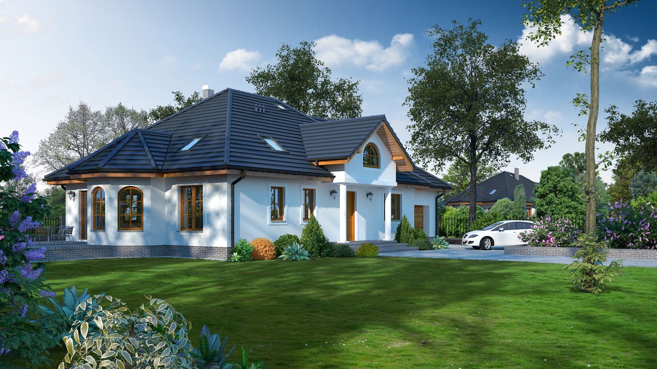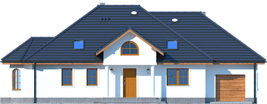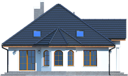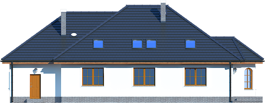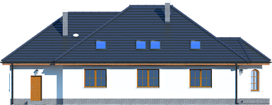 Graficzne opracowanie rzutów poglądowych widocznych na karcie projektu zostało wykonane przez Extradom.pl. Prezentowane przez Extradom.pl wizualizacje wykonane zostały przez autora projektu i należy poczytywać je jedynie za przykład i propozycję wykończenia, wizję architektoniczną autora projektu. Ostateczne wykończenie budynku może nastąpić na wiele sposobów. Szczegółowe rozwiązania zastosowane w oferowanej dokumentacji - w tym również ilość, lokalizacje i wygląd okien, drzwi, kominów - mogą w niewielkim stopniu różnić się od prezentowanej wizualizacji budynku.