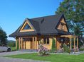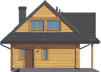 Wysokość ścianki kolankowej: 0.92 m. Strop: drewniany. Pokrycie dachu: dachówka gontopodobna Gerard Corona. Ściany zewnętrzne: płazy drewniane + wełna mineralna + deska. Ściany wewnętrzne: płazy drewniane. Typ ogrzewania: kocioł gazowy lub kocioł na paliwo stałe. Inne: okna połaciowe Velux.