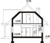 Graficzne opracowanie rzutów poglądowych widocznych na karcie projektu zostało wykonane przez Extradom.pl. Prezentowane przez Extradom.pl wizualizacje wykonane zostały przez autora projektu i należy poczytywać je jedynie za przykład i propozycję wykończenia, wizję architektoniczną autora projektu. Ostateczne wykończenie budynku może nastąpić na wiele sposobów. Szczegółowe rozwiązania zastosowane w oferowanej dokumentacji - w tym również ilość, lokalizacje i wygląd okien, drzwi, kominów - mogą w niewielkim stopniu różnić się od prezentowanej wizualizacji budynku.
