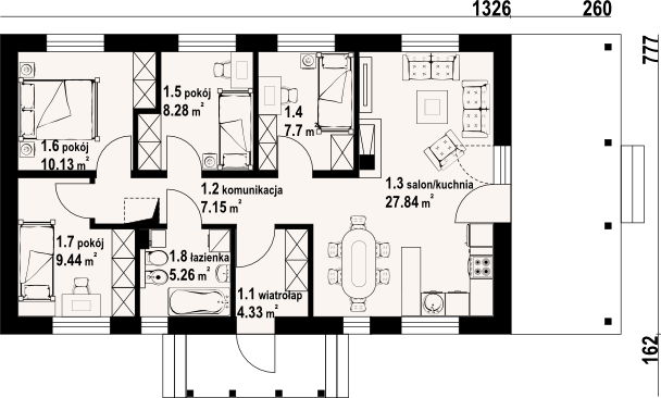 PROJEKT Z BUDOWĄ Istnieje możliwość zaadaptowania tego projektu do technologii prefabrykowanej/modułowej i budowy nawet w 6 miesięcy ze stałym kosztem budowy