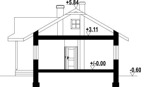 Wysokość ścianki kolankowej: 0.3 m. Strop: płyta żelbetowa. Pokrycie dachu: dachówka ceramiczna. Ściany zewnętrzne: pustaki ceramiczne + styropian. Ściany wewnętrzne: pustaki ceramiczne. Typ ogrzewania: kocioł gazowy.