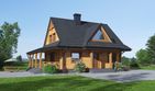 Graficzne opracowanie rzutów poglądowych widocznych na karcie projektu zostało wykonane przez Extradom.pl. Prezentowane przez Extradom.pl wizualizacje wykonane zostały przez autora projektu i należy poczytywać je jedynie za przykład i propozycję wykończenia, wizję architektoniczną autora projektu. Ostateczne wykończenie budynku może nastąpić na wiele sposobów. Szczegółowe rozwiązania zastosowane w oferowanej dokumentacji - w tym również ilość, lokalizacje i wygląd okien, drzwi, kominów - mogą w niewielkim stopniu różnić się od prezentowanej wizualizacji budynku.