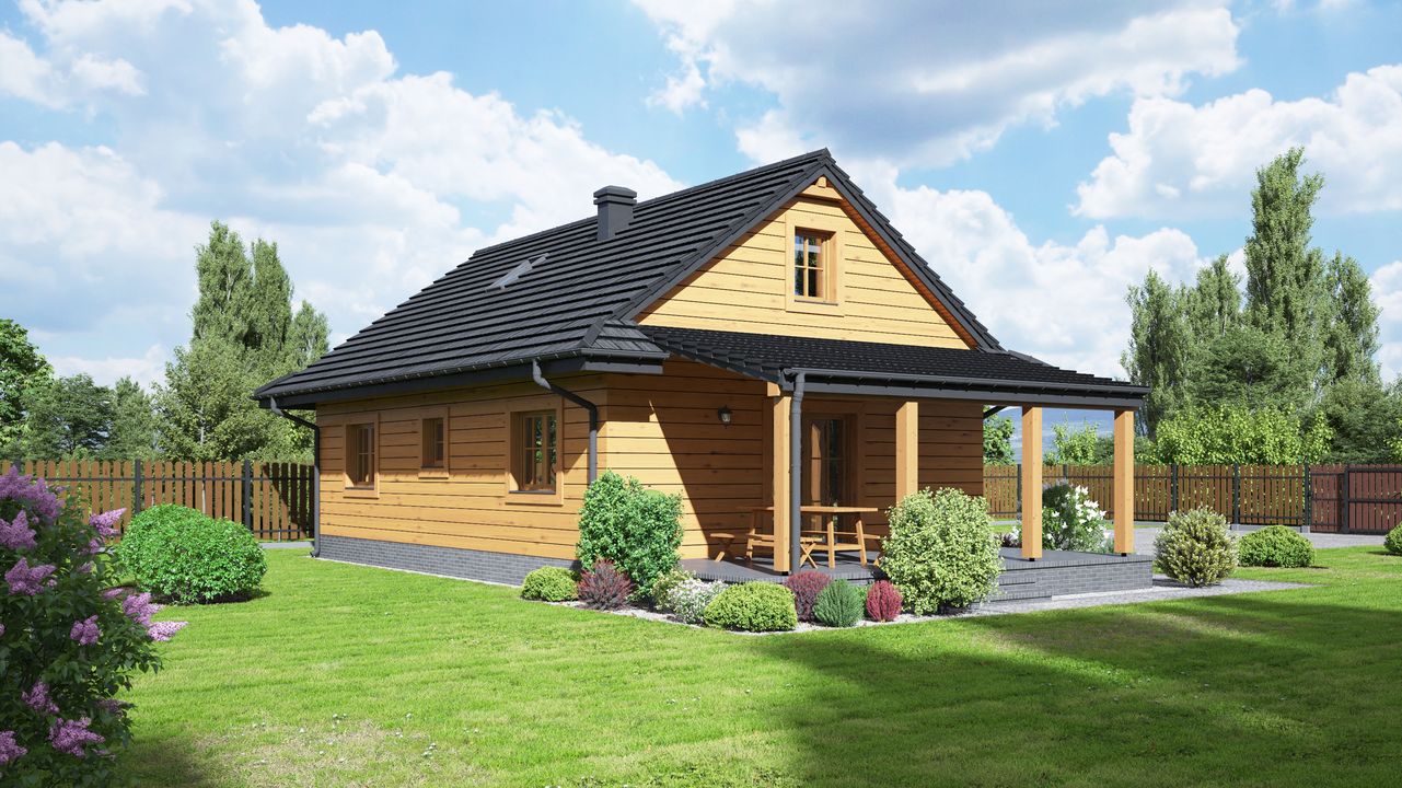 Wysokość ścianki kolankowej: 0.4 m. Strop: drewniany. Pokrycie dachu: dachówka gontopodobna Gerard Corona. Ściany zewnętrzne: szkieletowe drewniane ocieplone wełną mineralną. Ściany wewnętrzne: szkieletowe drewniane. Typ ogrzewania: kocioł gazowy lub kocioł na paliwo stałe. Inne: okna połaciowe Fakro.
