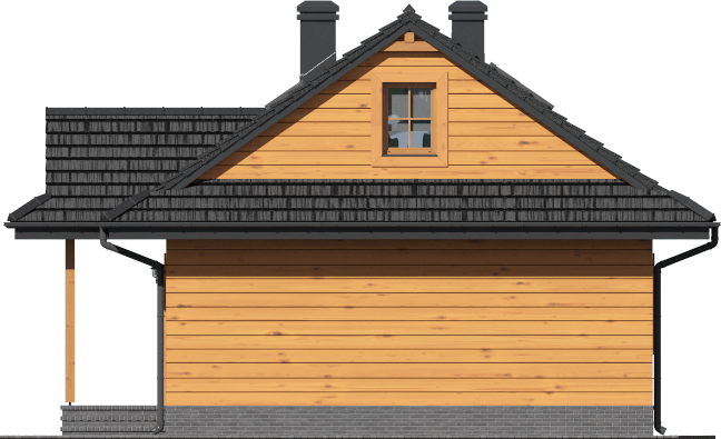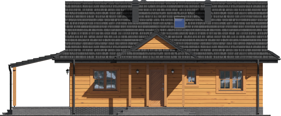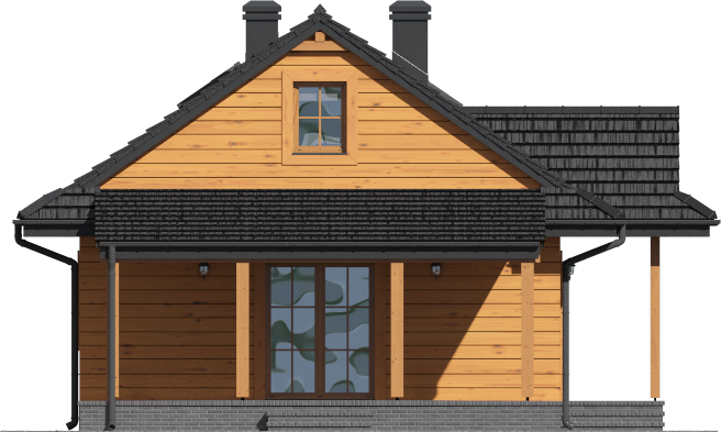 Graficzne opracowanie rzutów poglądowych widocznych na karcie projektu zostało wykonane przez Extradom.pl. Prezentowane przez Extradom.pl wizualizacje wykonane zostały przez autora projektu i należy poczytywać je jedynie za przykład i propozycję wykończenia, wizję architektoniczną autora projektu. Ostateczne wykończenie budynku może nastąpić na wiele sposobów. Szczegółowe rozwiązania zastosowane w oferowanej dokumentacji - w tym również ilość, lokalizacje i wygląd okien, drzwi, kominów - mogą w niewielkim stopniu różnić się od prezentowanej wizualizacji budynku.