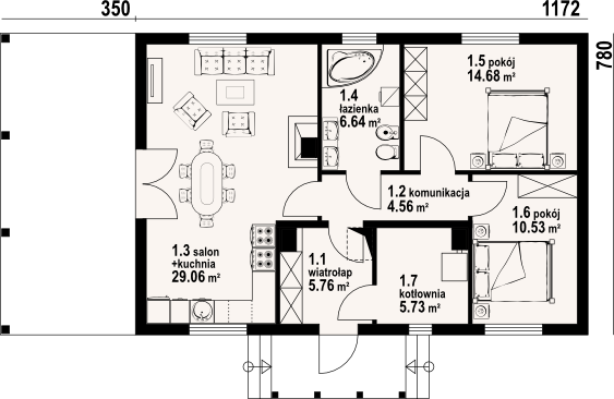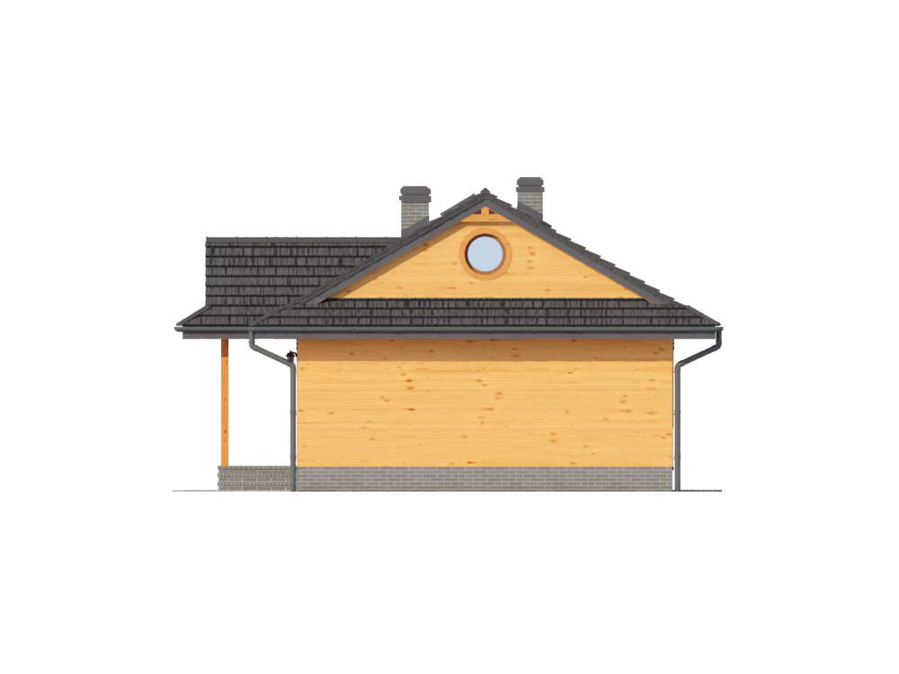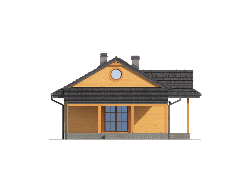 Graficzne opracowanie rzutów poglądowych widocznych na karcie projektu zostało wykonane przez Extradom.pl. Prezentowane przez Extradom.pl wizualizacje wykonane zostały przez autora projektu i należy poczytywać je jedynie za przykład i propozycję wykończenia, wizję architektoniczną autora projektu. Ostateczne wykończenie budynku może nastąpić na wiele sposobów. Szczegółowe rozwiązania zastosowane w oferowanej dokumentacji - w tym również ilość, lokalizacje i wygląd okien, drzwi, kominów - mogą w niewielkim stopniu różnić się od prezentowanej wizualizacji budynku.