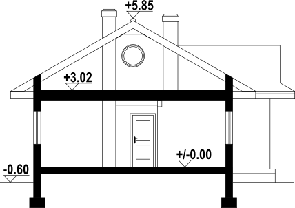 Wysokość ścianki kolankowej: 0.3 m. Strop: drewniany. Pokrycie dachu: dachówka gontopodobna Gerard Corona. Ściany zewnętrzne: szkieletowe drewniane ocieplone wełną mineralną. Ściany wewnętrzne: szkieletowe drewniane. Typ ogrzewania: kocioł gazowy lub kocioł na paliwo stałe.