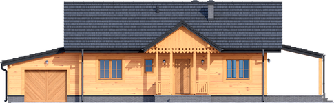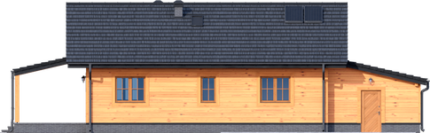 Graficzne opracowanie rzutów poglądowych widocznych na karcie projektu zostało wykonane przez Extradom.pl. Prezentowane przez Extradom.pl wizualizacje wykonane zostały przez autora projektu i należy poczytywać je jedynie za przykład i propozycję wykończenia, wizję architektoniczną autora projektu. Ostateczne wykończenie budynku może nastąpić na wiele sposobów. Szczegółowe rozwiązania zastosowane w oferowanej dokumentacji - w tym również ilość, lokalizacje i wygląd okien, drzwi, kominów - mogą w niewielkim stopniu różnić się od prezentowanej wizualizacji budynku.