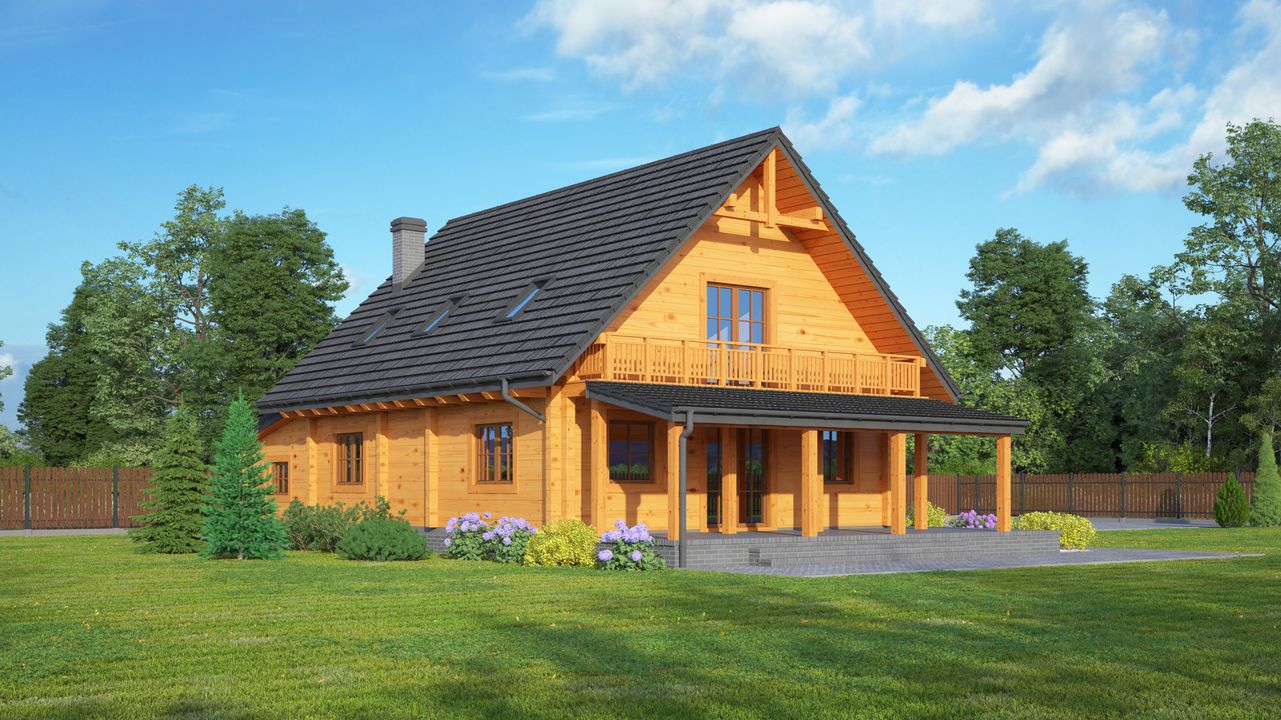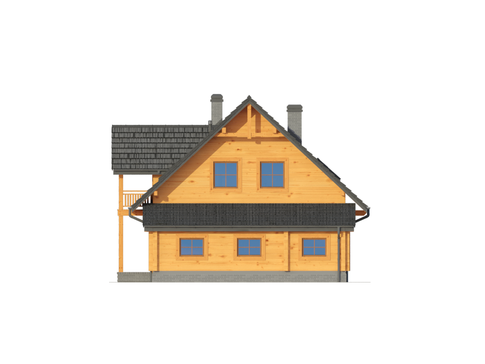 Wysokość ścianki kolankowej: 0.85 m. Strop: drewniany. Pokrycie dachu: dachówka gontopodobna Gerard Corona. Ściany zewnętrzne: płazy drewniane + wełna mineralna + deska. Ściany wewnętrzne: płazy drewniane. Typ ogrzewania: kocioł gazowy lub kocioł na paliwo stałe.