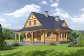 Graficzne opracowanie rzutów poglądowych widocznych na karcie projektu zostało wykonane przez Extradom.pl. Prezentowane przez Extradom.pl wizualizacje wykonane zostały przez autora projektu i należy poczytywać je jedynie za przykład i propozycję wykończenia, wizję architektoniczną autora projektu. Ostateczne wykończenie budynku może nastąpić na wiele sposobów. Szczegółowe rozwiązania zastosowane w oferowanej dokumentacji - w tym również ilość, lokalizacje i wygląd okien, drzwi, kominów - mogą w niewielkim stopniu różnić się od prezentowanej wizualizacji budynku.
