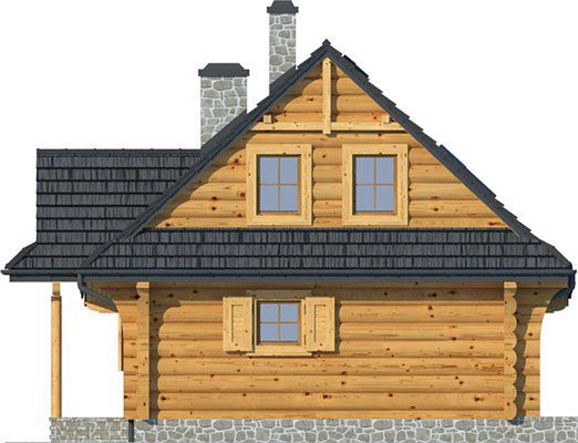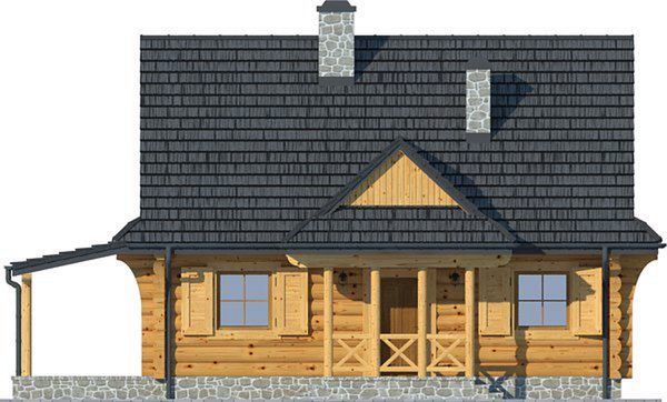 Wysokość ścianki kolankowej: 0.76 m. Strop: drewniany. Pokrycie dachu: dachówka gontopodobna Gerard Corona. Ściany zewnętrzne: półbale + wełna mineralna + deska. Ściany wewnętrzne: płazy drewniane. Typ ogrzewania: kocioł gazowy lub kocioł na paliwo stałe.