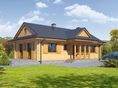Graficzne opracowanie rzutów poglądowych widocznych na karcie projektu zostało wykonane przez Extradom.pl. Prezentowane przez Extradom.pl wizualizacje wykonane zostały przez autora projektu i należy poczytywać je jedynie za przykład i propozycję wykończenia, wizję architektoniczną autora projektu. Ostateczne wykończenie budynku może nastąpić na wiele sposobów. Szczegółowe rozwiązania zastosowane w oferowanej dokumentacji - w tym również ilość, lokalizacje i wygląd okien, drzwi, kominów - mogą w niewielkim stopniu różnić się od prezentowanej wizualizacji budynku.