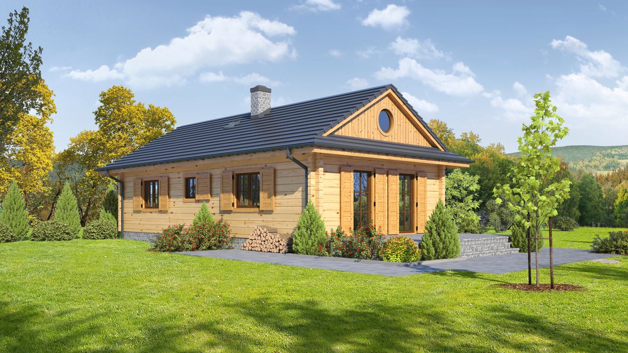 Wysokość ścianki kolankowej: 0.18 m. Strop: drewniany. Pokrycie dachu: dachówka gontopodobna Gerard Corona. Ściany zewnętrzne: płazy drewniane + wełna mineralna + deska. Ściany wewnętrzne: płazy drewniane. Typ ogrzewania: kocioł gazowy lub kocioł na paliwo stałe.