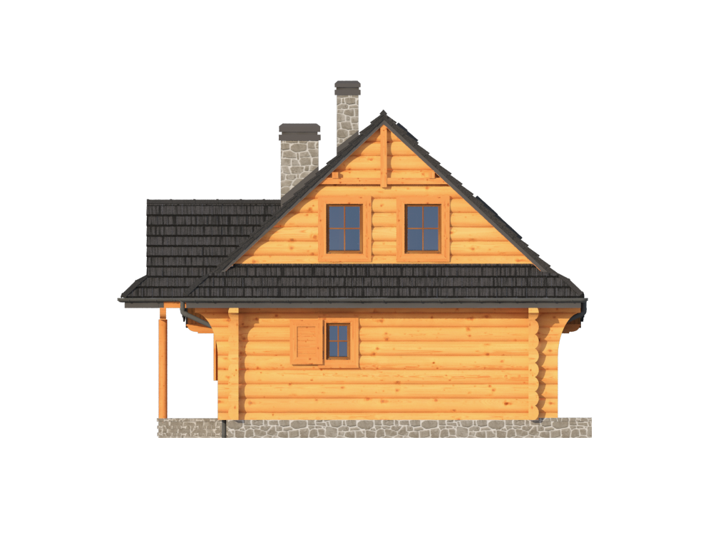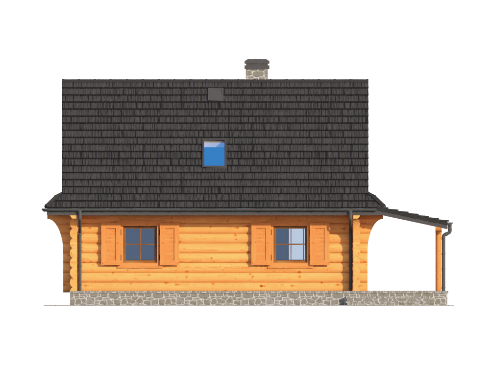 Wysokość ścianki kolankowej: 0.76 m. Strop: drewniany. Pokrycie dachu: dachówka gontopodobna Gerard Corona. Ściany zewnętrzne: płazy drewniane + wełna mineralna + deska. Ściany wewnętrzne: płazy drewniane. Typ ogrzewania: kocioł gazowy lub kocioł na paliwo stałe.