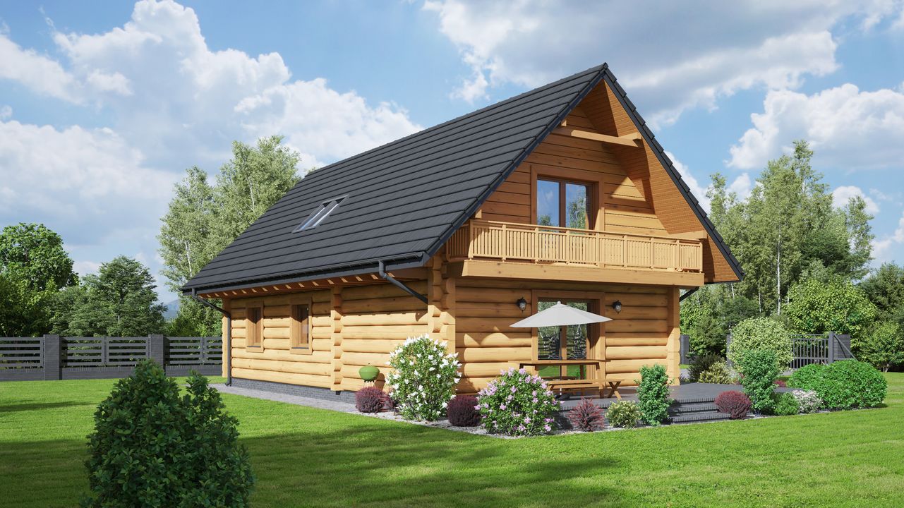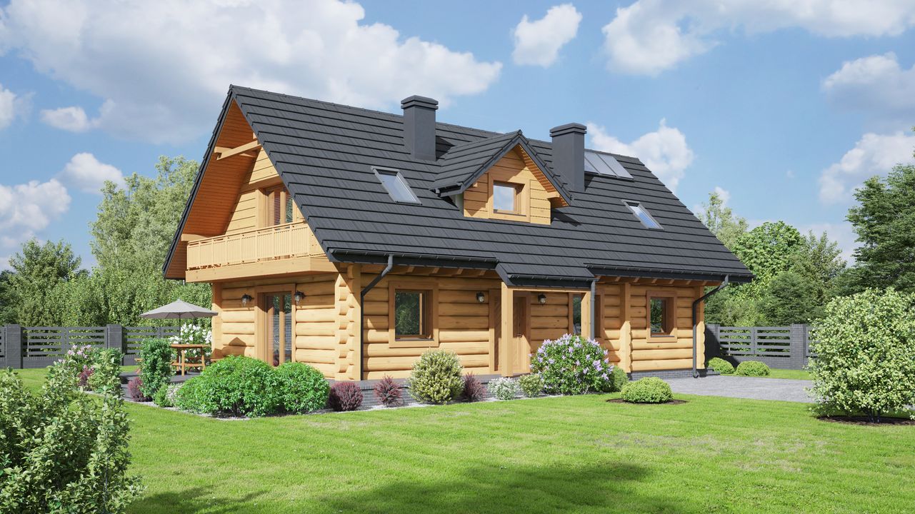 Wysokość ścianki kolankowej: 1.09 m. Strop: drewniany. Pokrycie dachu: dachówka gontopodobna Gerard Corona. Ściany zewnętrzne: płazy drewniane + wełna mineralna + deska. Ściany wewnętrzne: płazy drewniane. Typ ogrzewania: kocioł gazowy. Instalacje dodatkowe: instalacja solarna. Inne: okna połaciowe Velux.