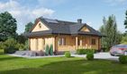 Graficzne opracowanie rzutów poglądowych widocznych na karcie projektu zostało wykonane przez Extradom.pl. Prezentowane przez Extradom.pl wizualizacje wykonane zostały przez autora projektu i należy poczytywać je jedynie za przykład i propozycję wykończenia, wizję architektoniczną autora projektu. Ostateczne wykończenie budynku może nastąpić na wiele sposobów. Szczegółowe rozwiązania zastosowane w oferowanej dokumentacji - w tym również ilość, lokalizacje i wygląd okien, drzwi, kominów - mogą w niewielkim stopniu różnić się od prezentowanej wizualizacji budynku.