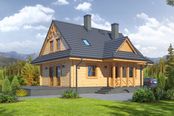 Graficzne opracowanie rzutów poglądowych widocznych na karcie projektu zostało wykonane przez Extradom.pl. Prezentowane przez Extradom.pl wizualizacje wykonane zostały przez autora projektu i należy poczytywać je jedynie za przykład i propozycję wykończenia, wizję architektoniczną autora projektu. Ostateczne wykończenie budynku może nastąpić na wiele sposobów. Szczegółowe rozwiązania zastosowane w oferowanej dokumentacji - w tym również ilość, lokalizacje i wygląd okien, drzwi, kominów - mogą w niewielkim stopniu różnić się od prezentowanej wizualizacji budynku.