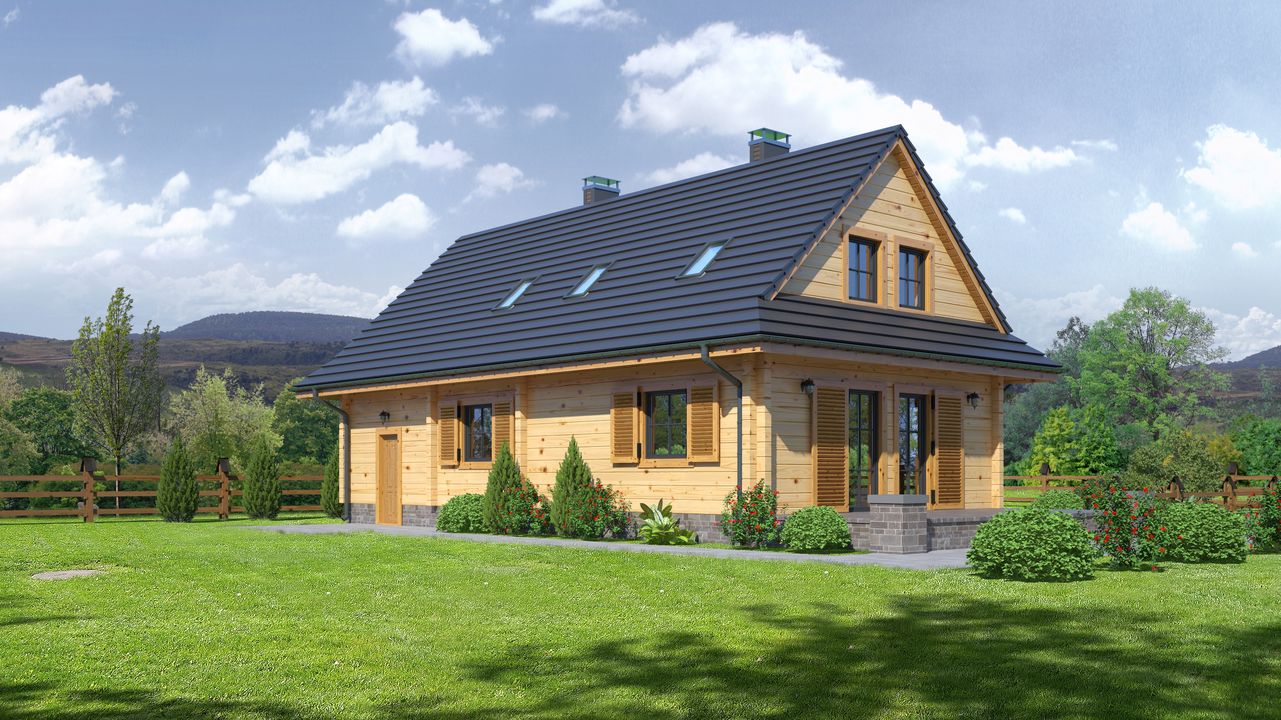 Wysokość ścianki kolankowej: 0.74 m. Strop: drewniany. Pokrycie dachu: dachówka gontopodobna Gerard Corona. Ściany zewnętrzne: płazy drewniane + izolacja natryskowa Icynene. Ściany wewnętrzne: płazy drewniane. Typ ogrzewania: Kocioł gazowy lub na paliwo stałe. Zastosowano systemy kominowe Poujoulat.
