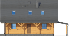 Wysokość ścianki kolankowej: 0.74 m. Strop: drewniany. Pokrycie dachu: dachówka gontopodobna Gerard Corona. Ściany zewnętrzne: szkieletowe drewniane ocieplone wełną mineralną. Ściany wewnętrzne: szkieletowe drewniane. Typ ogrzewania: kocioł gazowy lub kocioł na paliwo stałe. Instalacje dodatkowe: instalacja solarna. Inne: okna połaciowe Fakro.