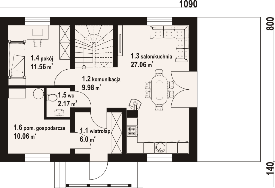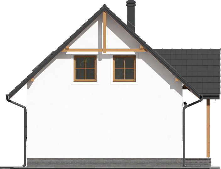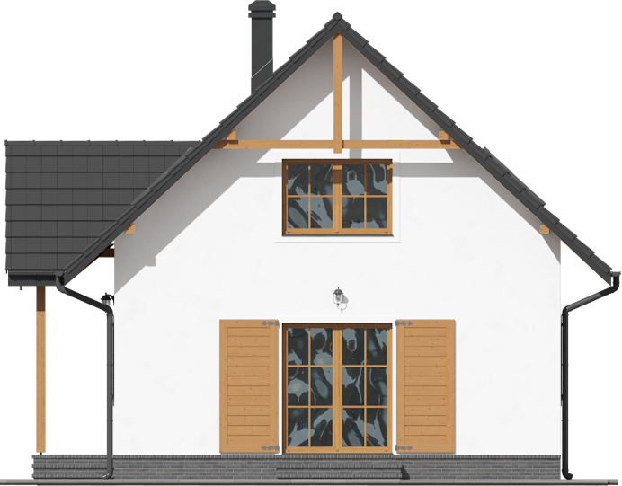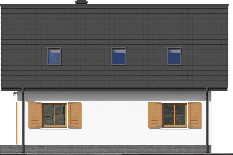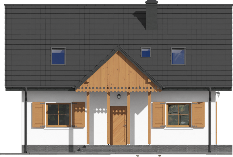 Graficzne opracowanie rzutów poglądowych widocznych na karcie projektu zostało wykonane przez Extradom.pl. Prezentowane przez Extradom.pl wizualizacje wykonane zostały przez autora projektu i należy poczytywać je jedynie za przykład i propozycję wykończenia, wizję architektoniczną autora projektu. Ostateczne wykończenie budynku może nastąpić na wiele sposobów. Szczegółowe rozwiązania zastosowane w oferowanej dokumentacji - w tym również ilość, lokalizacje i wygląd okien, drzwi, kominów - mogą w niewielkim stopniu różnić się od prezentowanej wizualizacji budynku.