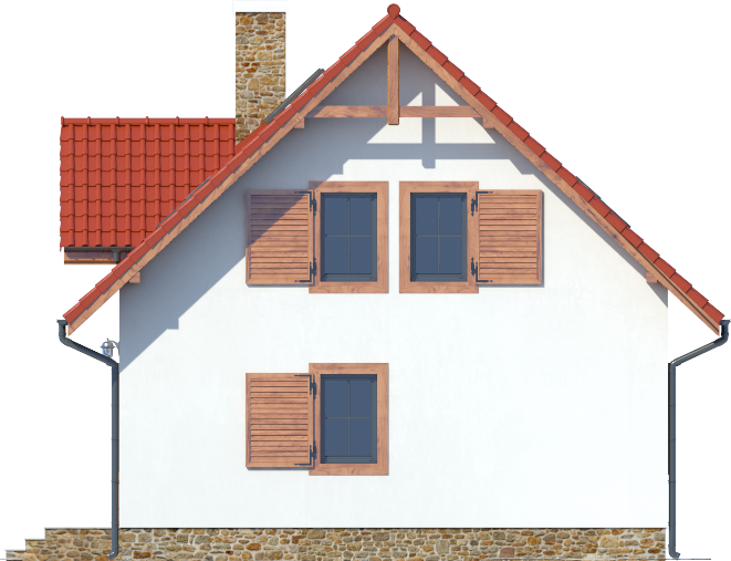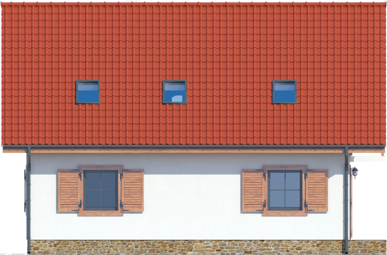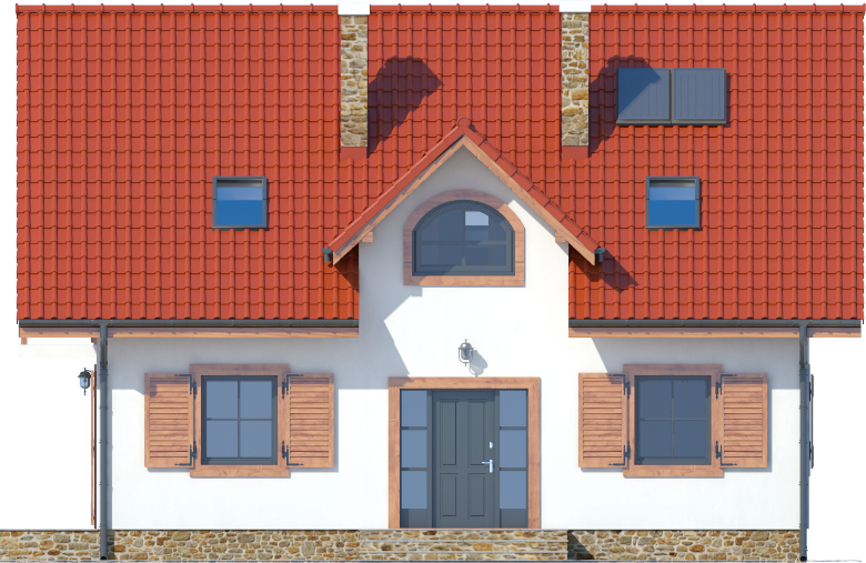 Graficzne opracowanie rzutów poglądowych widocznych na karcie projektu zostało wykonane przez Extradom.pl. Prezentowane przez Extradom.pl wizualizacje wykonane zostały przez autora projektu i należy poczytywać je jedynie za przykład i propozycję wykończenia, wizję architektoniczną autora projektu. Ostateczne wykończenie budynku może nastąpić na wiele sposobów. Szczegółowe rozwiązania zastosowane w oferowanej dokumentacji - w tym również ilość, lokalizacje i wygląd okien, drzwi, kominów - mogą w niewielkim stopniu różnić się od prezentowanej wizualizacji budynku.
